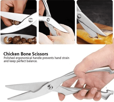 The 1 Stainless Kitchen Scissors are constructed from superior stainless steel with two types of blades to cut through all types of meat effortlessly.