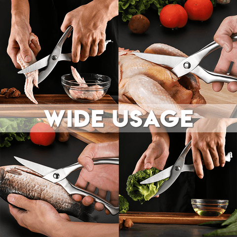 ✅ Multi-purpose Kitchen Shears- They can cut meat, chicken bones, vegetables, and flower stems, and also serve as a nutcracker, bottle opener, and scraper for fish scales. Be used as a kitchen knife after disassembly. Perfect for a kitchen and picnic.