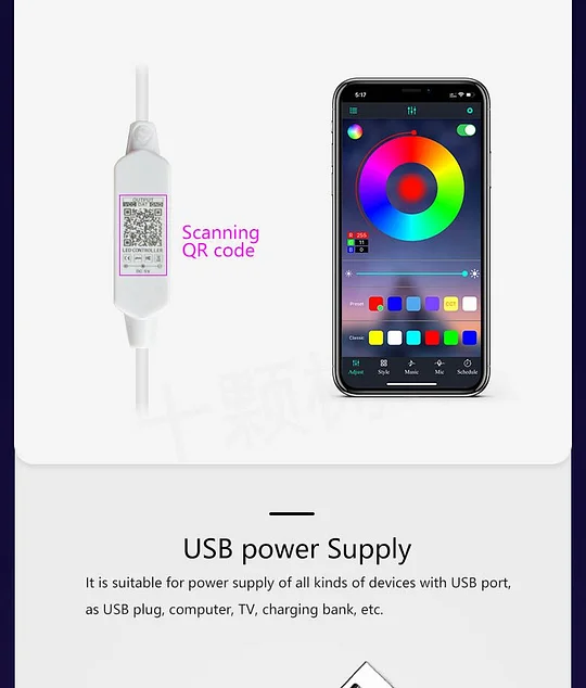 Millions of colors, and hundreds of static/dynamic modes, sync to your music, and adjust brightness, and timer by App.